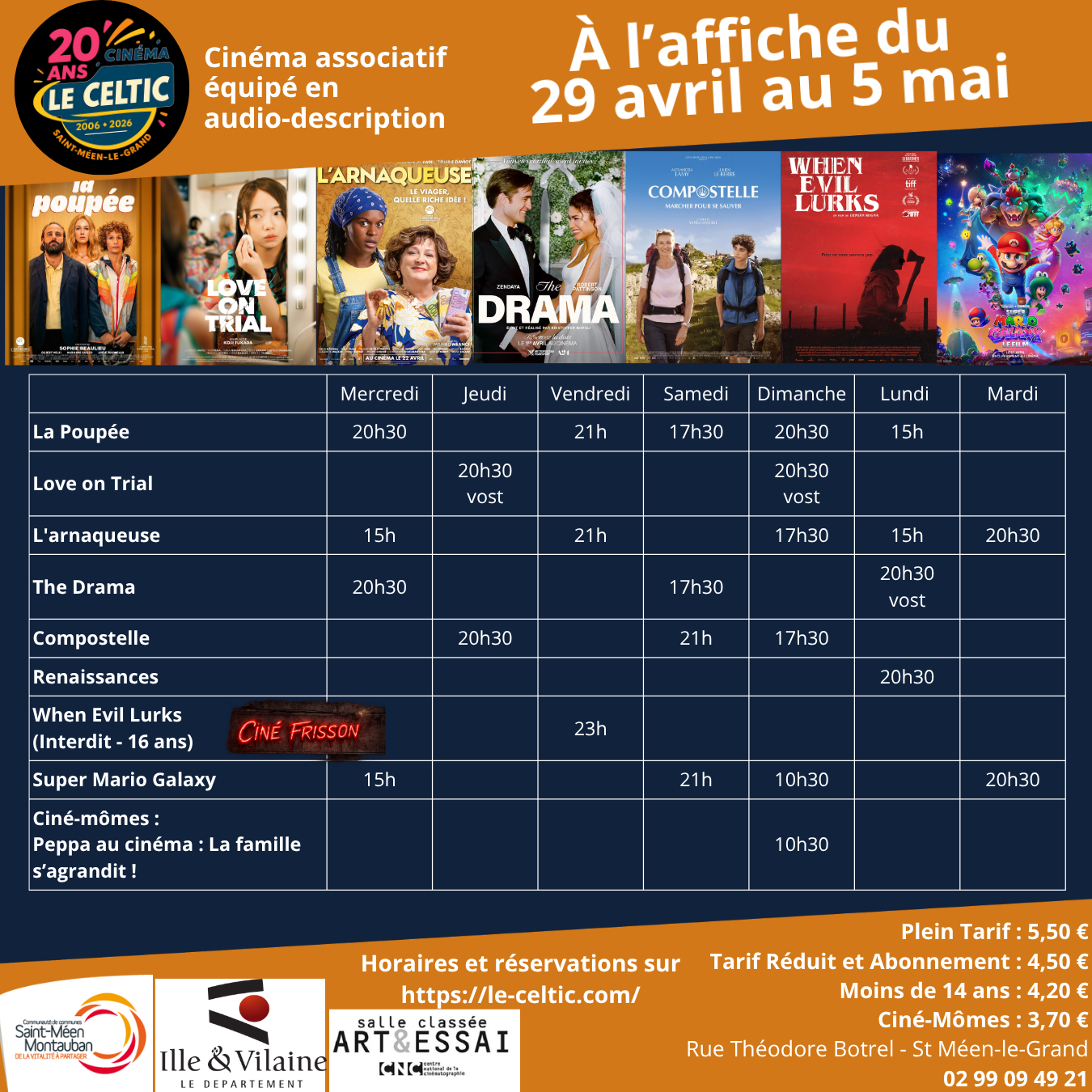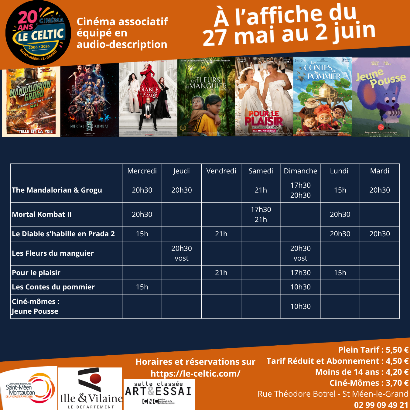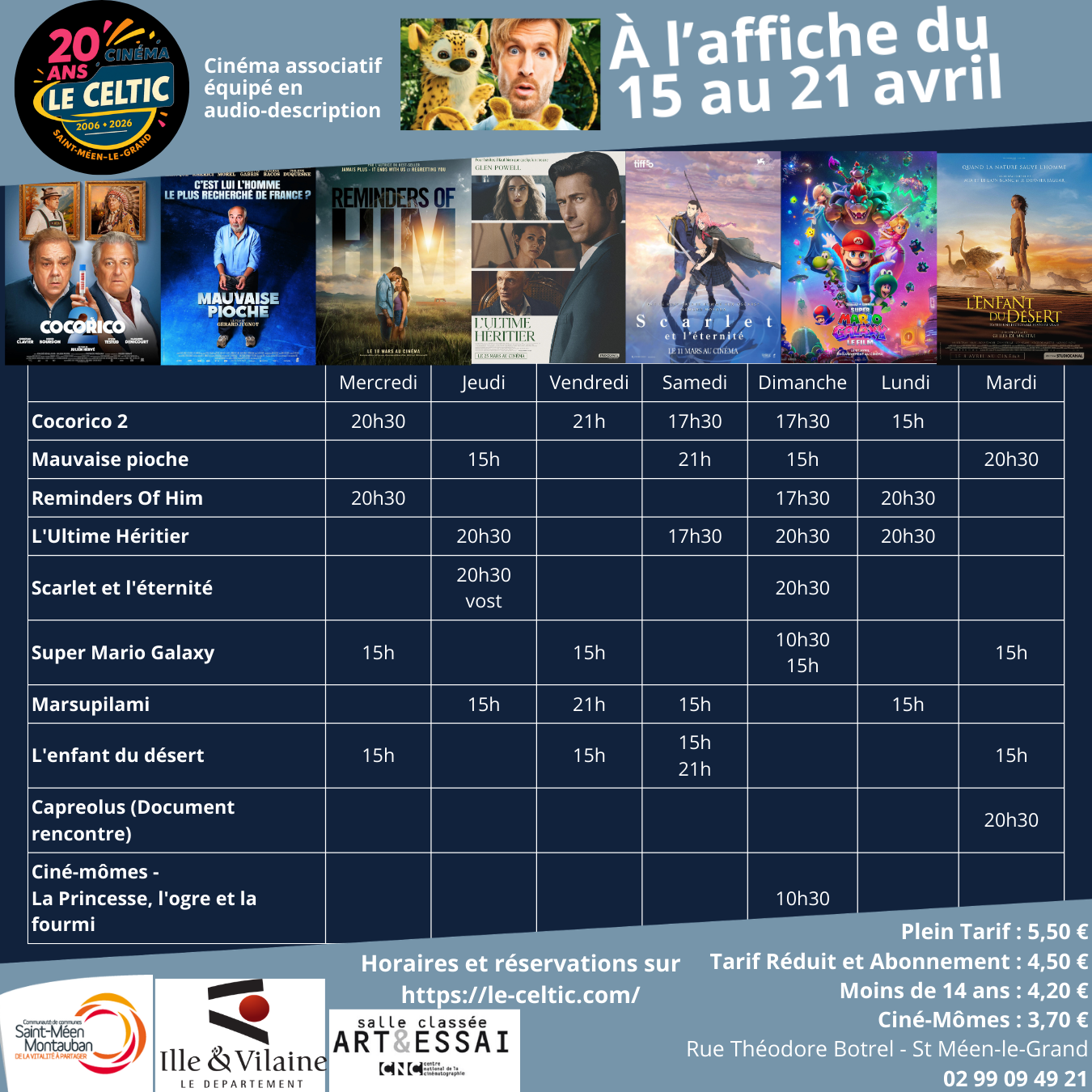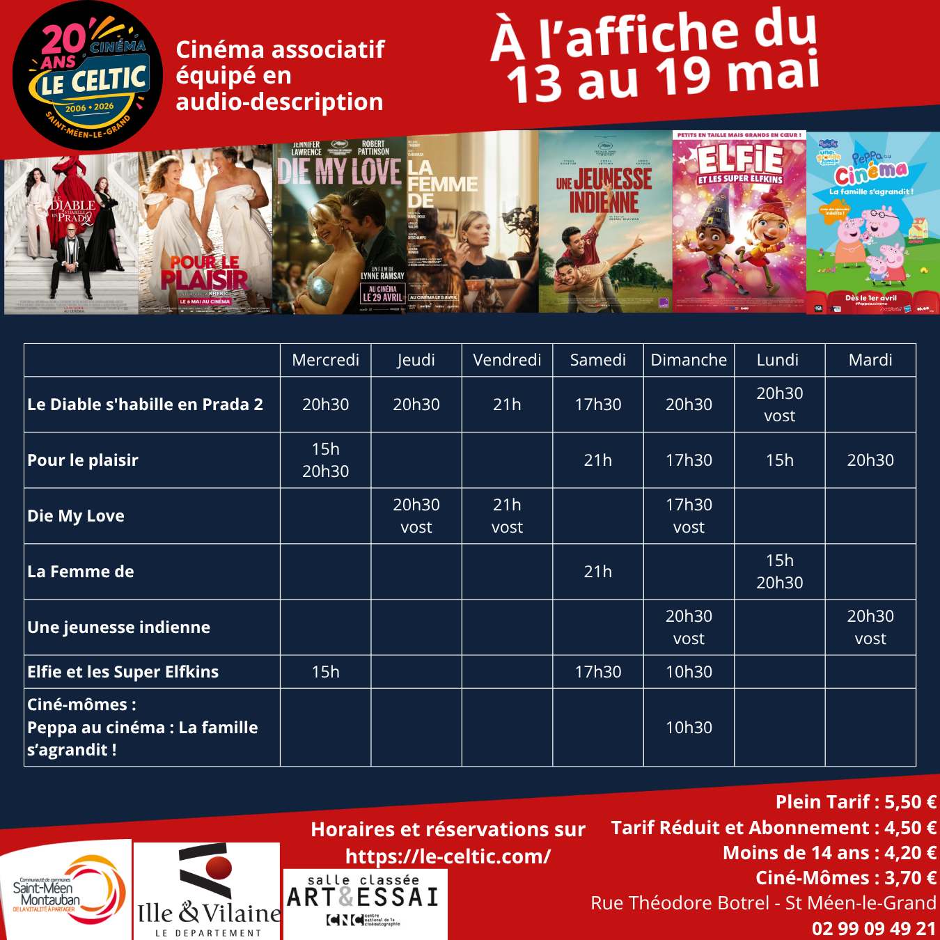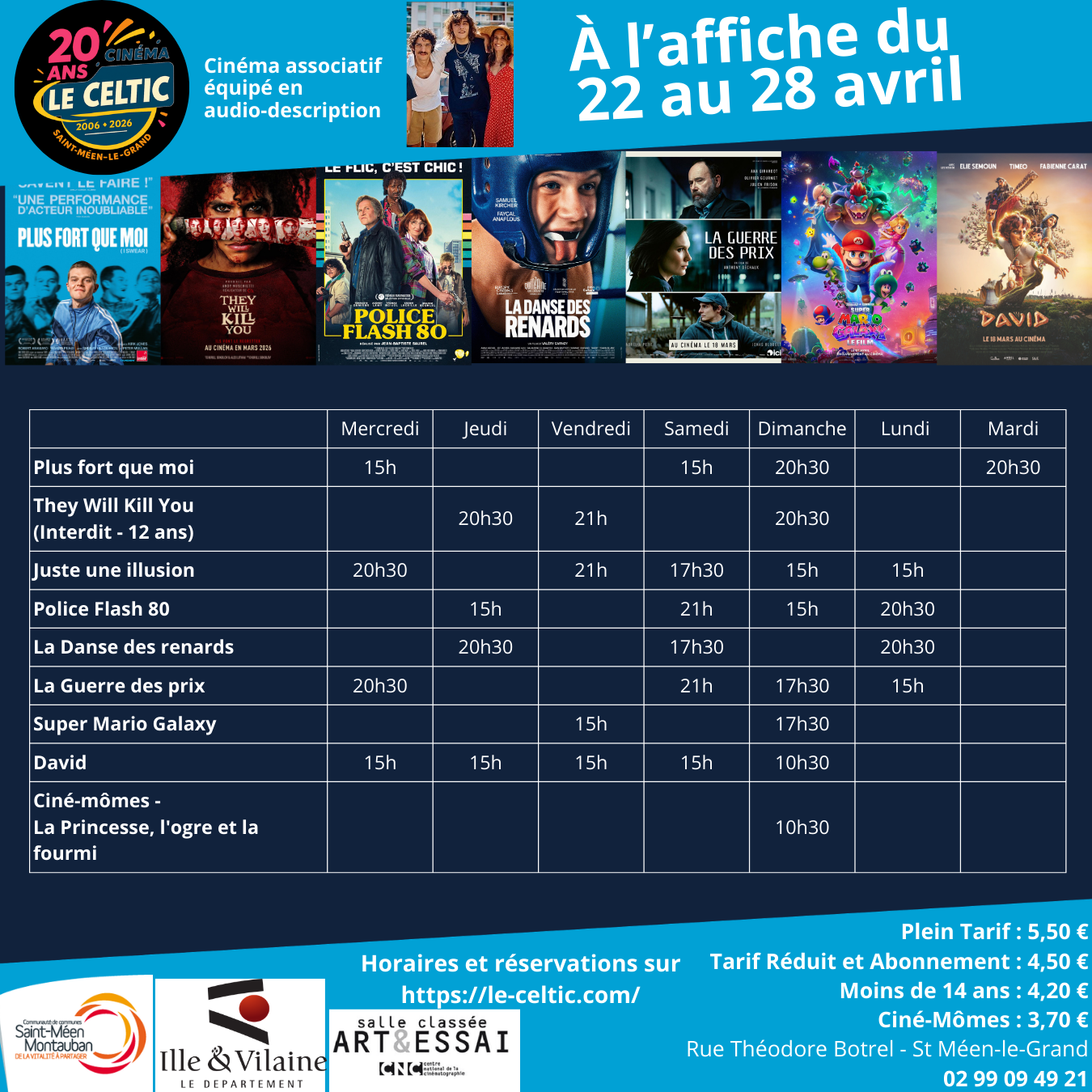 Si vous souhaitez réserver vos places, cliquez sur le film et l'heure souhaitée ou en vous rendant directement au cinéma.