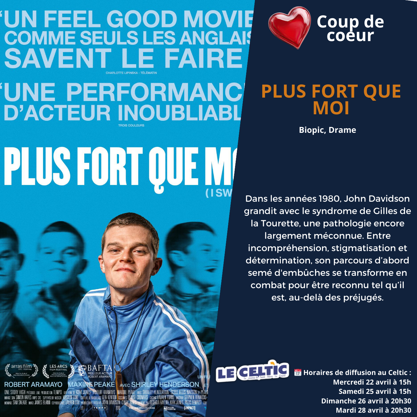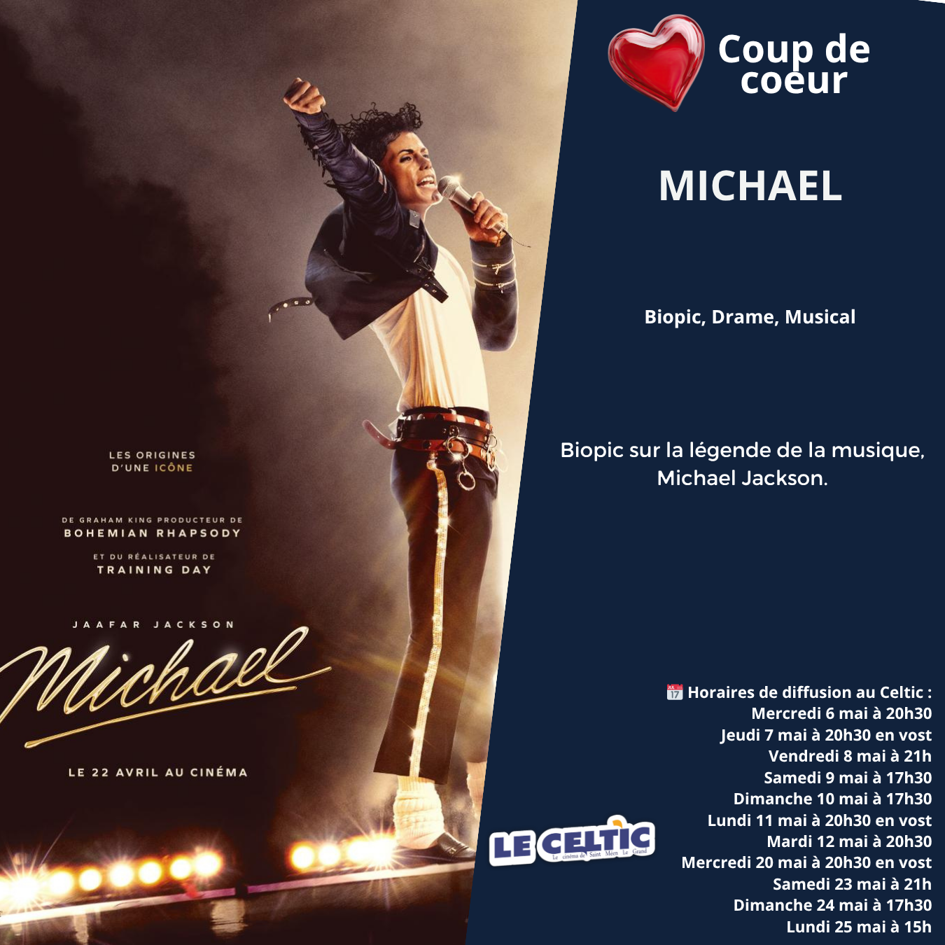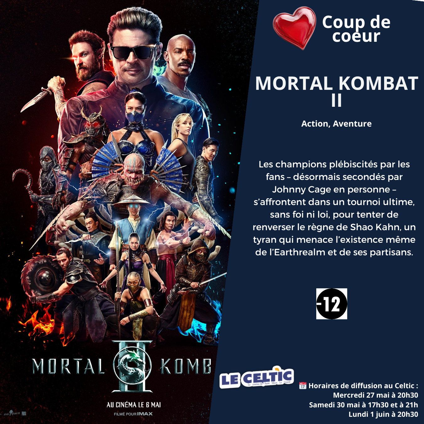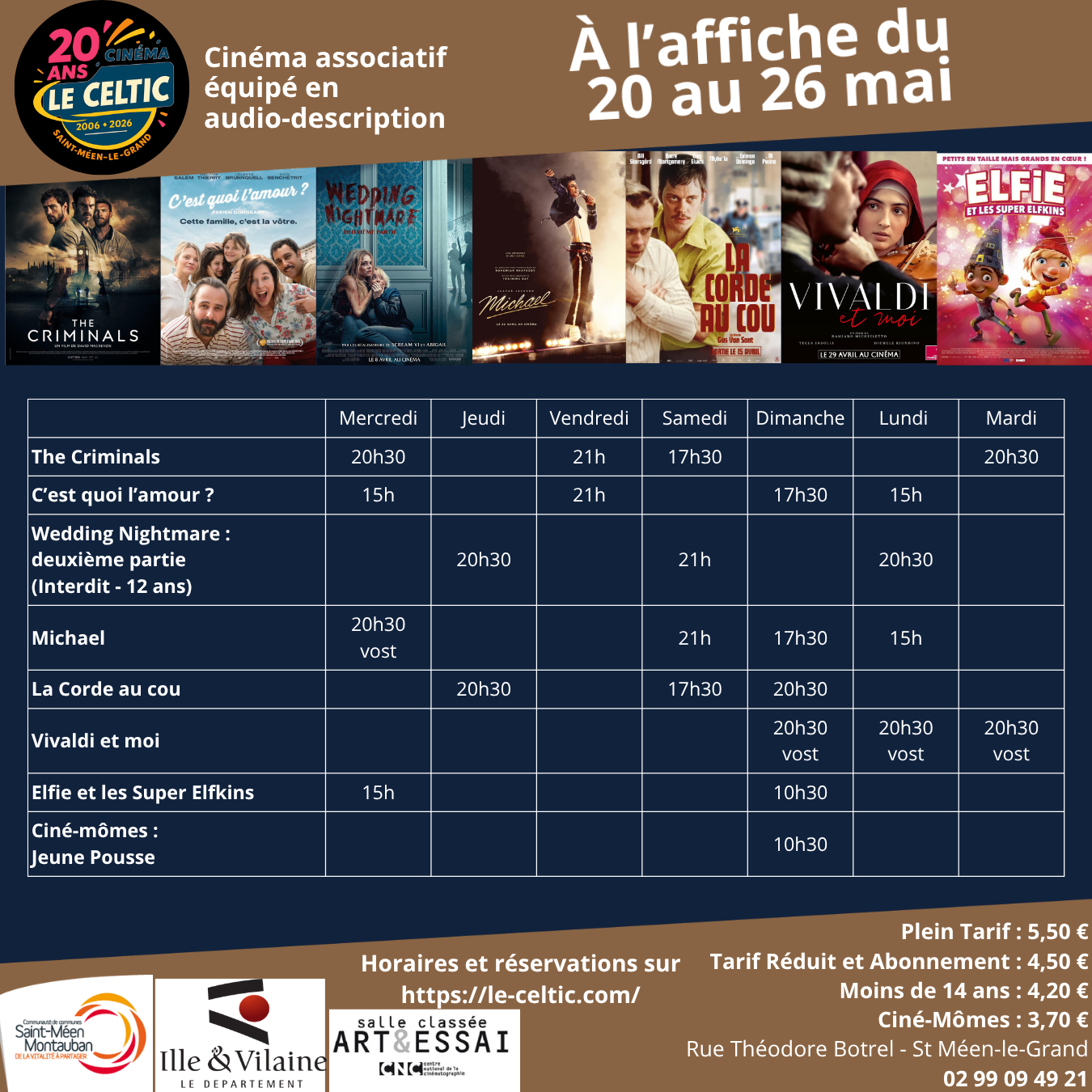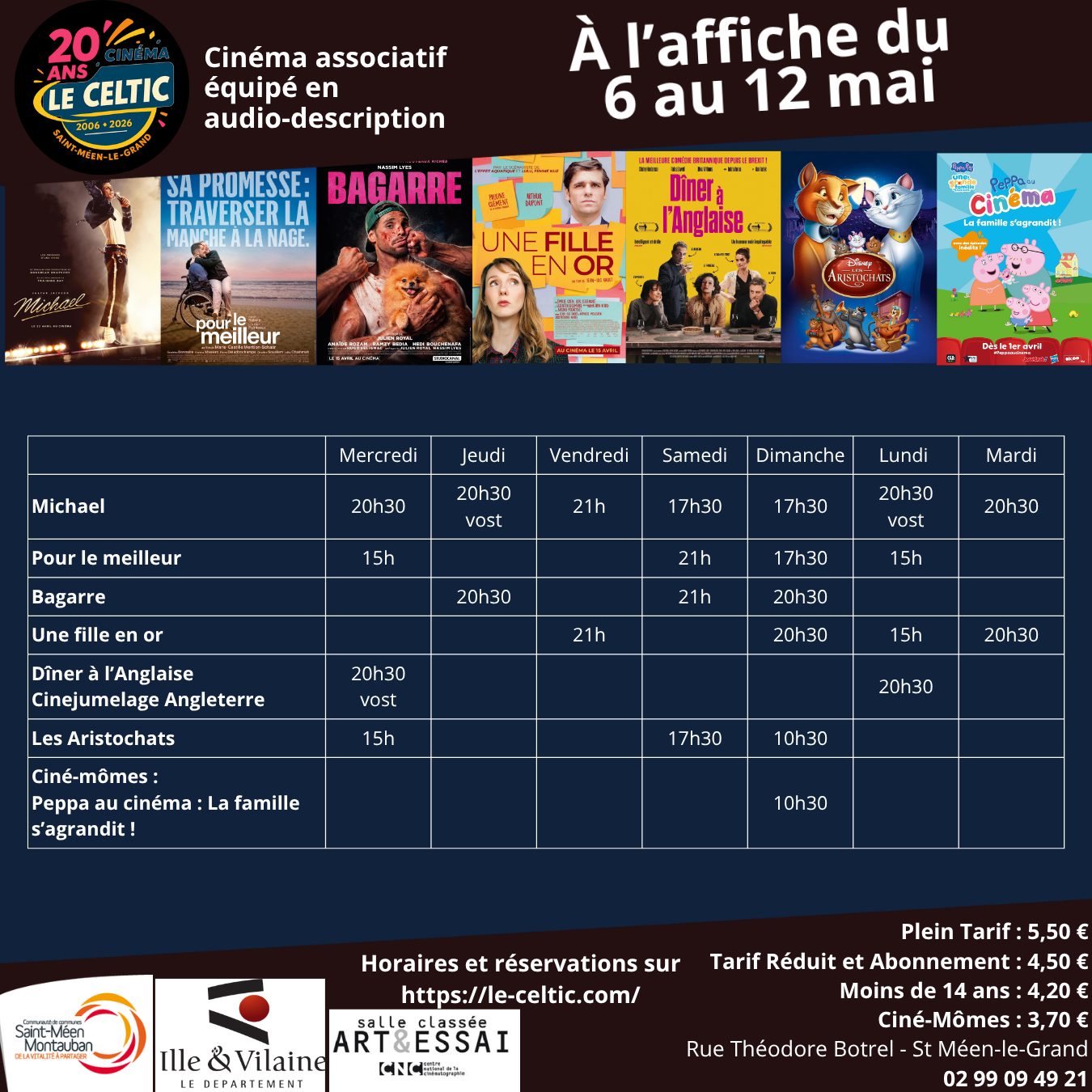 Si vous souhaitez réserver vos places, cliquez sur le film et l'heure souhaitée ou en vous rendant directement au cinéma.