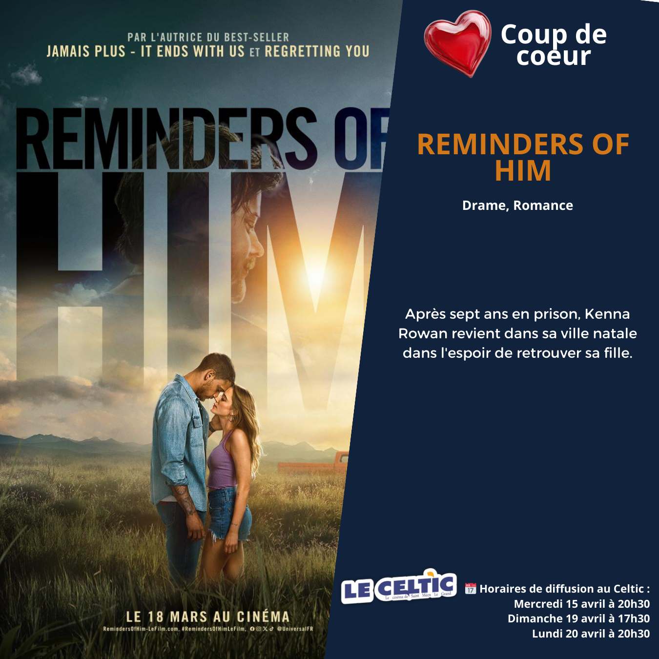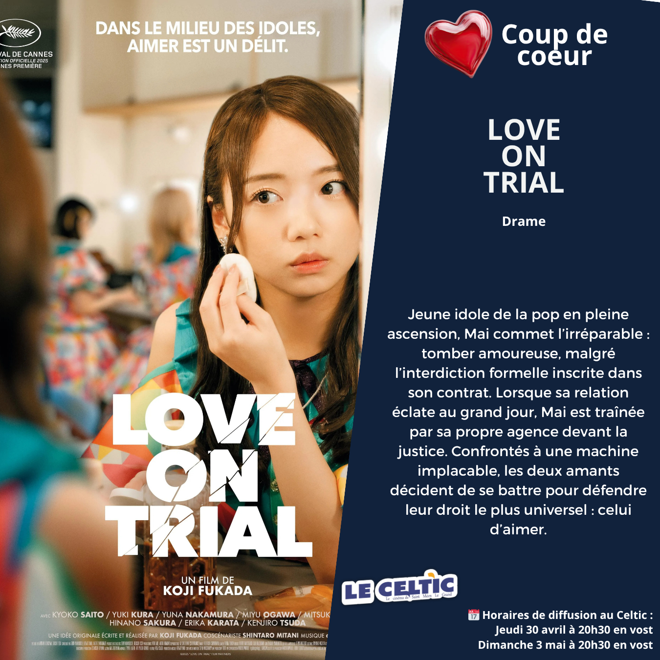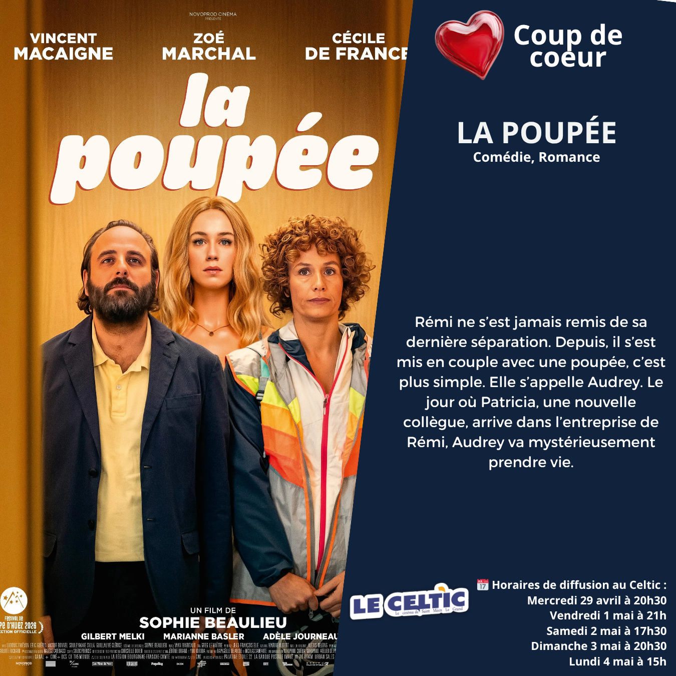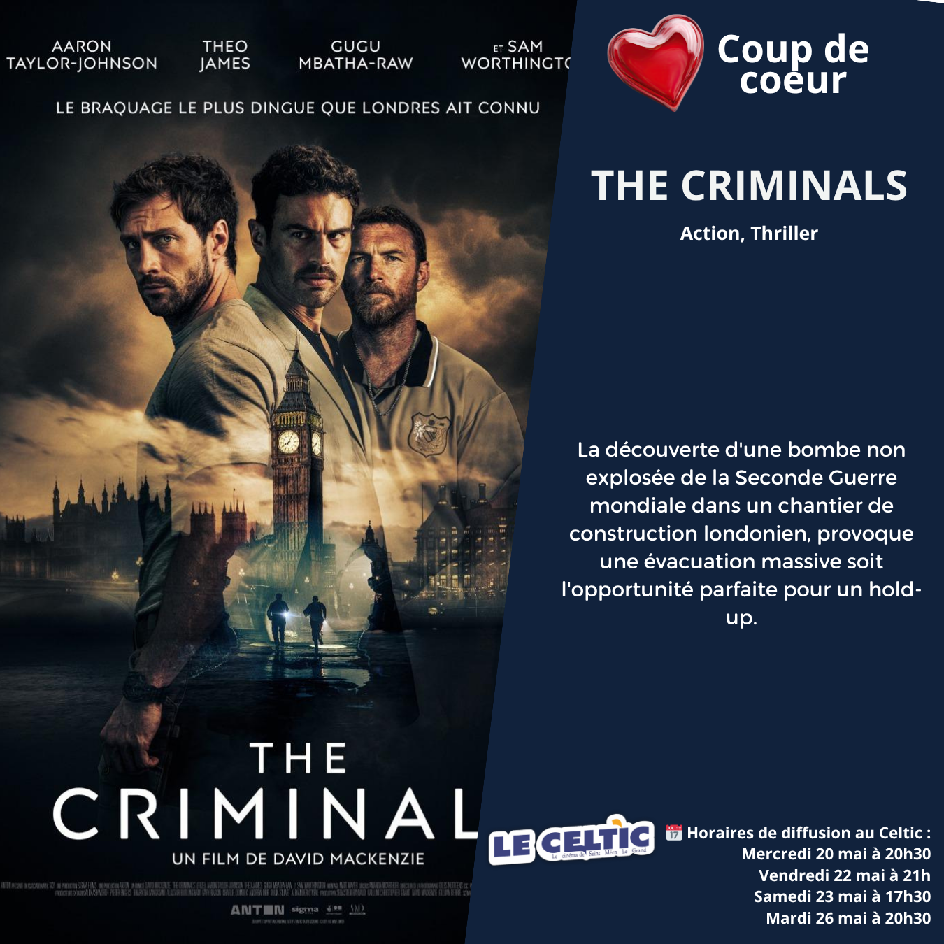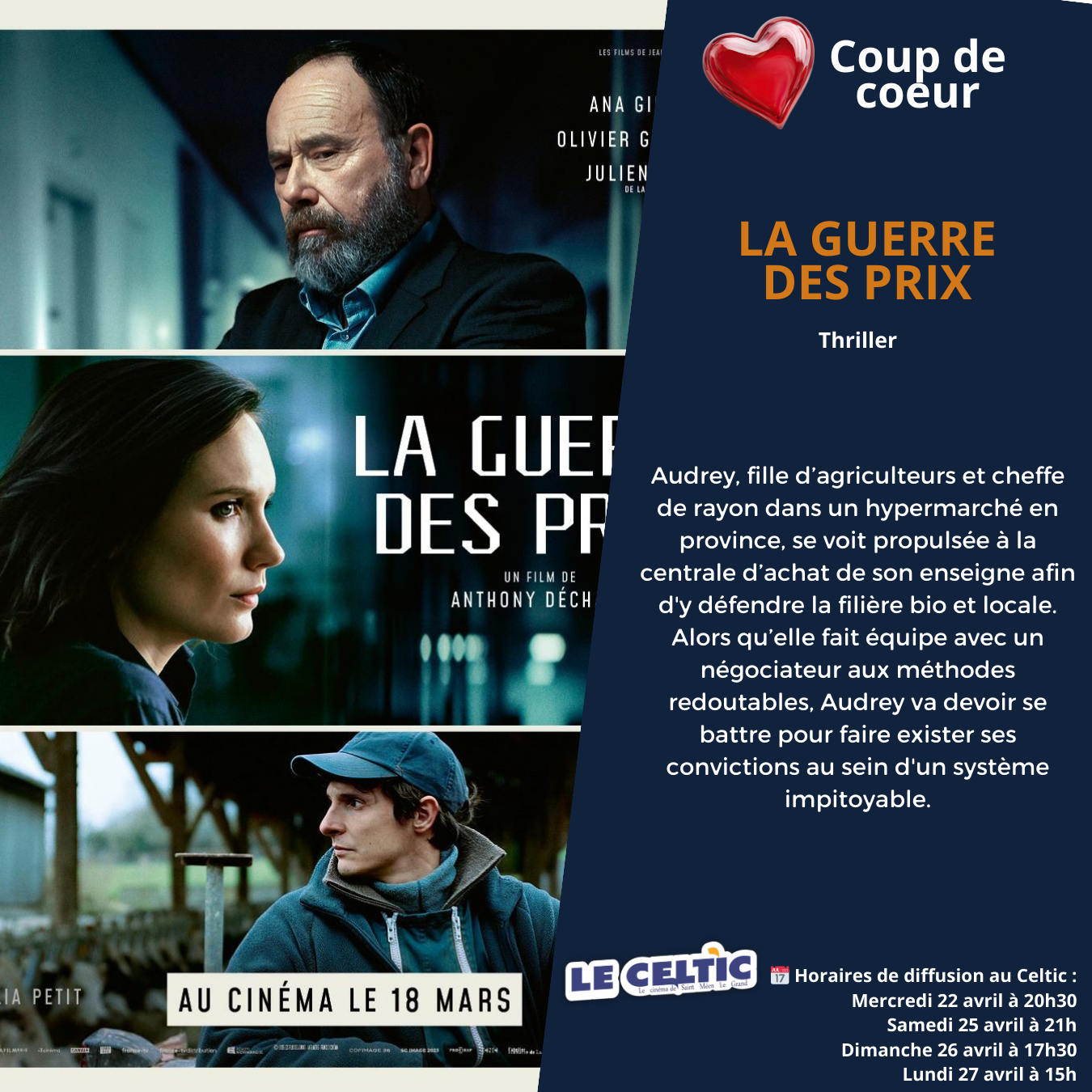 Si vous souhaitez réserver vos places, cliquez sur le film et l'heure souhaitée ou en vous rendant directement au cinéma.